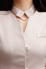2. Liemenė, dekoruota – reguliuojamu dydžio liemeniu, įmantriu kaklo užsegimu, kišenėmis bei aukso spalvos dėtalėmis. ✨